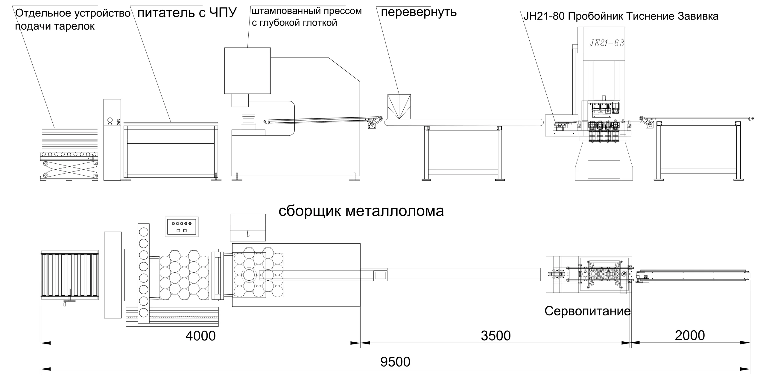 60 линия автомата для изготовления дна банки диаметром 108 мм для маленьких круглых банок