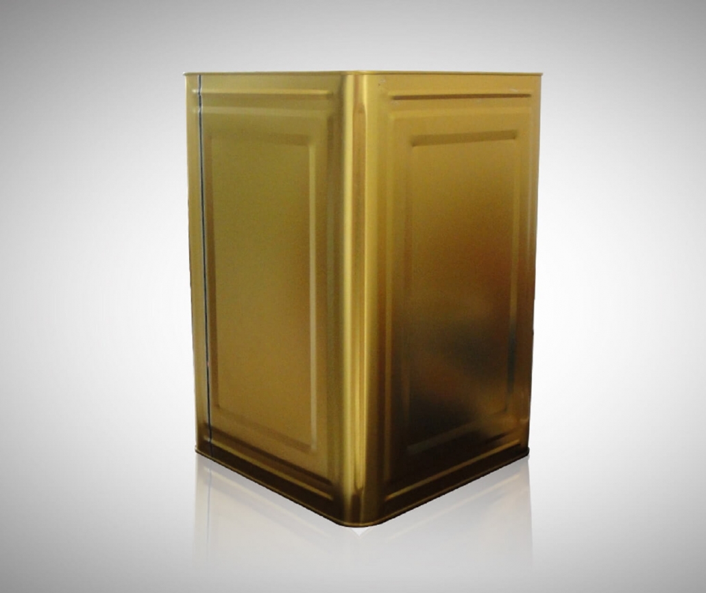 Она изготовлена из трех кусков металлического листа (в основном из белой жести): корпуса банки, дна и крышки. Банка имеет квадратную форму. Диапазон квадратных банок: объем 10-20 литров, диагональ 300-320 мм, высота 170-450 мм.