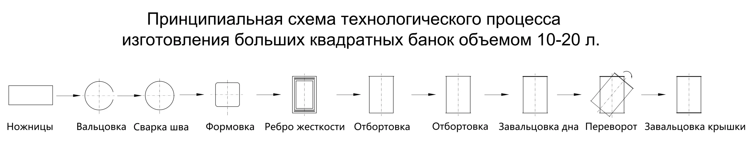 Оборудование для производства квадратных банок объемом от 10 до 20 литров полуавтоматической линии