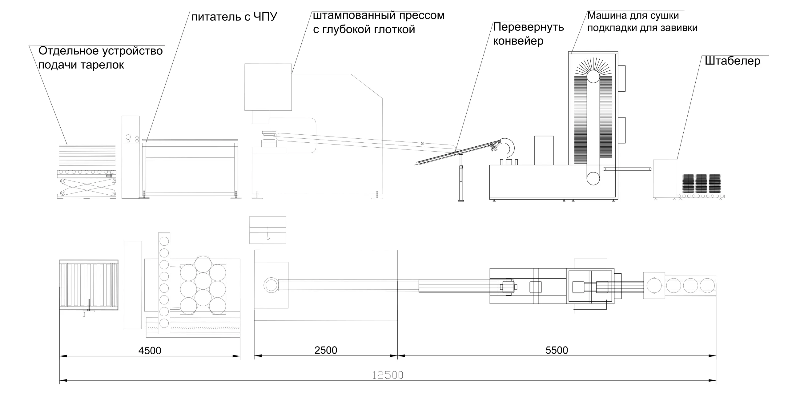 Технический процесс: Автоматическое устройство подачи-Формовка и формовка-Поворот и конвейер-Складирование-Формовка края-Выравнивание-Сушка-Складирование-Вывод